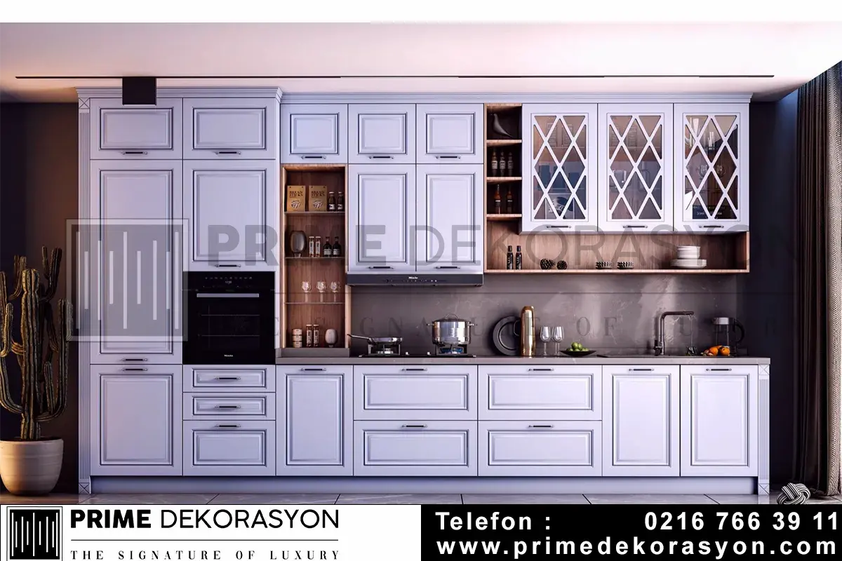 Prime Dekorasyon, üst segment lüks mutfak dolabı üretimi yapan bir firmadır. Tüm mutfak dolabı modellerimizde 1. sınıf malzemeyi 20 yılı aşkın tecrübemizle harmanlayarak üst düzey işçilik ile birleştiriyoruz. Üretimini üstlendiğimiz mutfak mobilyaları şu şekilde listelenebilir.